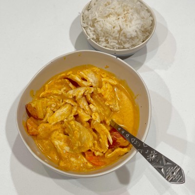 Meat with coconut milk, potato and carrot. Served with veggie egg roll.